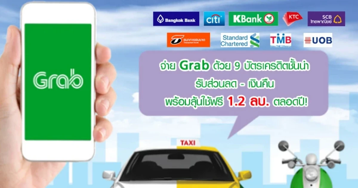 จ่าย Grab ด้วย 9 บัตรเครดิตชั้นนำ รับส่วนลด - เงินคืน พร้อมรับสิทธิ์ลุ้นใช้ฟรี มูลค่ากว่า 1.2 ลบ. ตลอดปี!