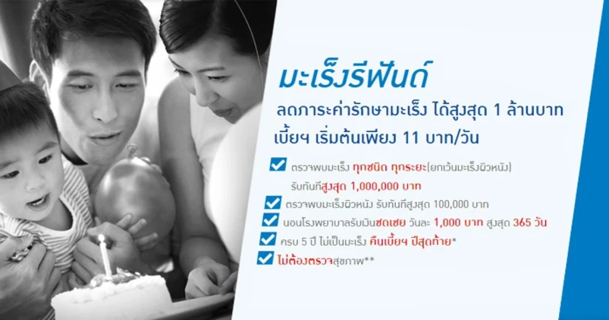 มะเร็ง รีฟันด์ "ไม่มีเคลมมะเร็ง...คืนเบี้ยประกันภัยปีสุดท้าย"