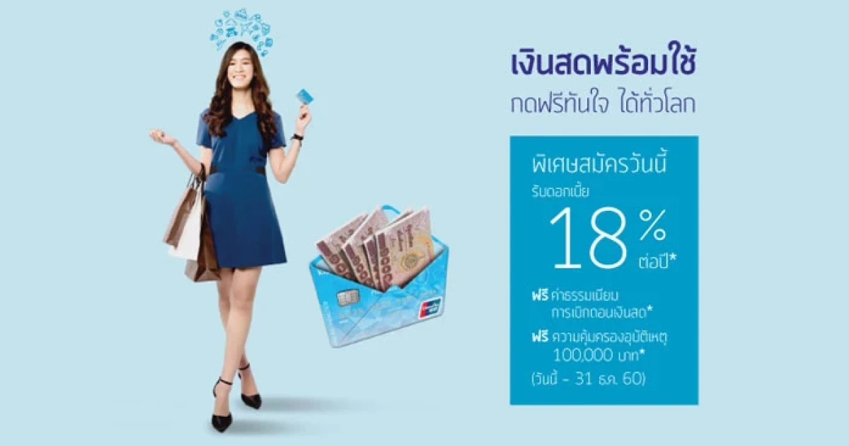 พิเศษ! สมัครเงินสดพร้อมใช้ KK Cash Card วันนี้ - 31 ธ.ค. 60 รับดอกเบี้ย 18% ต่อปี