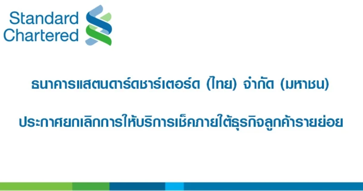 ธ.สแตนดาร์ดชาร์เตอร์ด (ไทย) ประกาศยกเลิกการให้บริการเช็คภายใต้ธุรกิจลูกค้ารายย่อย