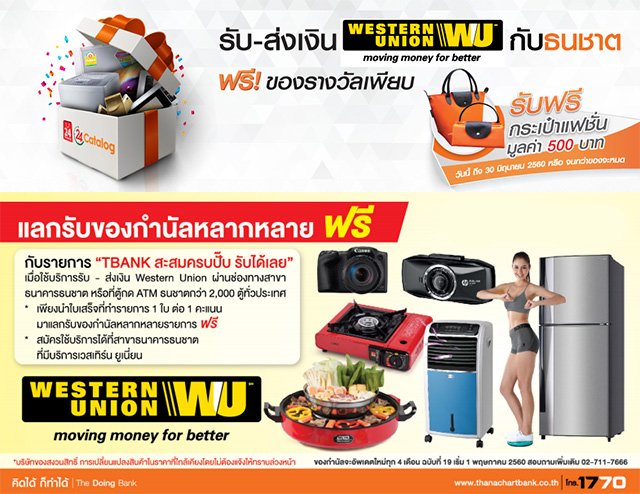 รับ-ส่งเงิน Western Union กับธนชาต ฟรี! ของรางวัลเพียบ