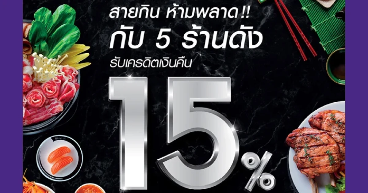 สายกิน ห้ามพลาด! รับเครดิตเงินคืน 15% กับ 5 ร้านอาหารดัง เมื่อชำระผ่านบัตรเครดิตไทยพาณิชย์