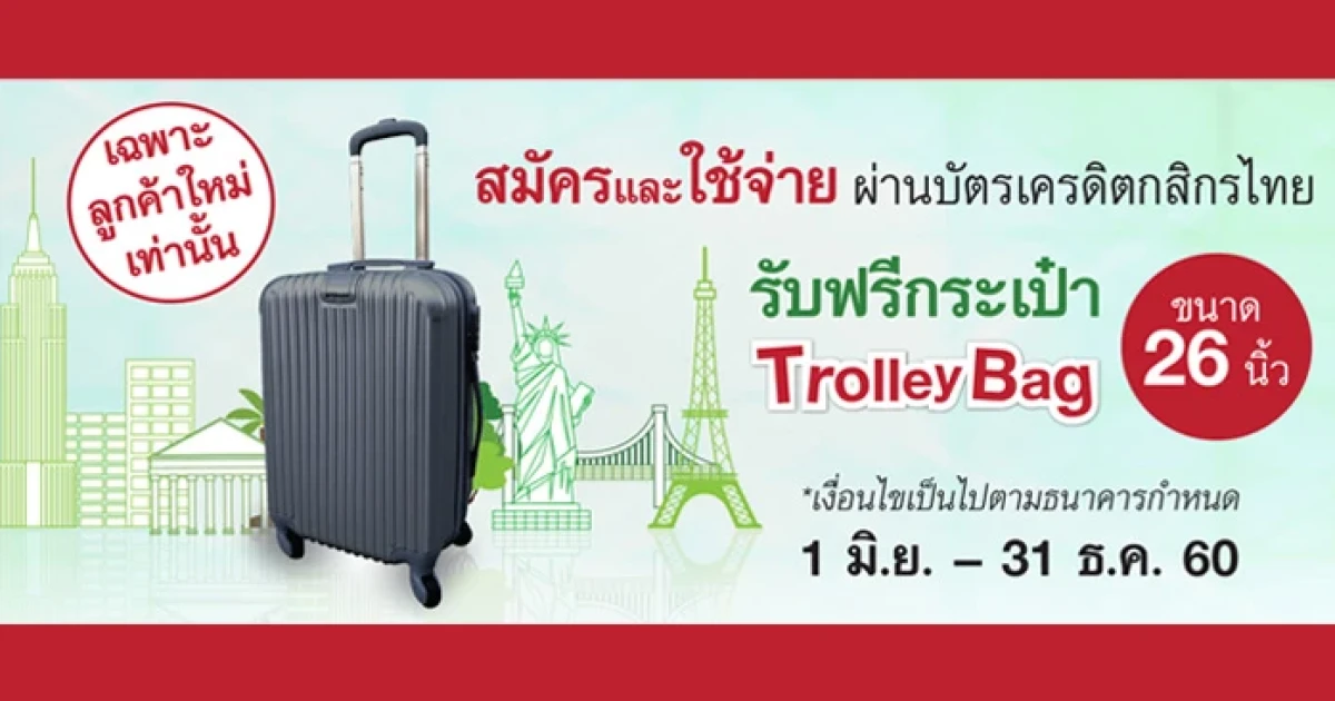 รับฟรี กระเป๋า Trolley Bag มูลค่า 5,990 บาท เมื่อสมัครและใช้จ่ายผ่านบัตรเครดิตกสิกรไทย