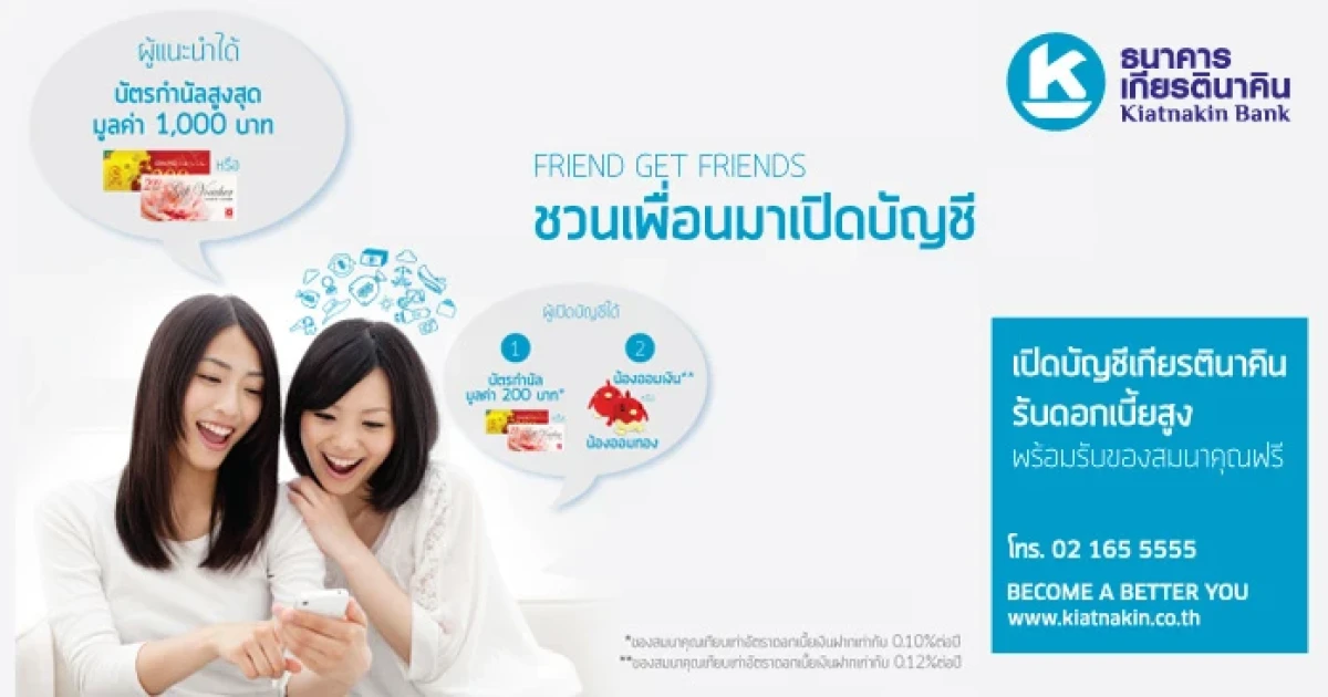 ชวนเพื่อนมาเปิดบัญชีกับธนาคารเกียรตินาคิน รับดอกเบี้ยสูง พร้อมรับของสมนาคุณฟรี