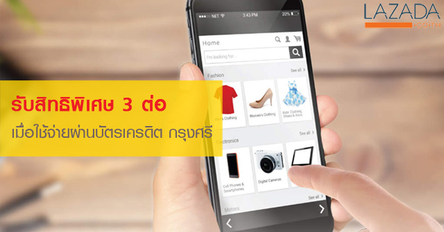 รับสิทธิพิเศษ 3 ต่อ เมื่อใช้จ่ายผ่านบัตรเครดิต กรุงศรี ที่ LAZADA.co.th