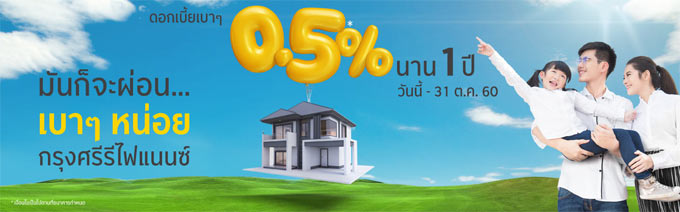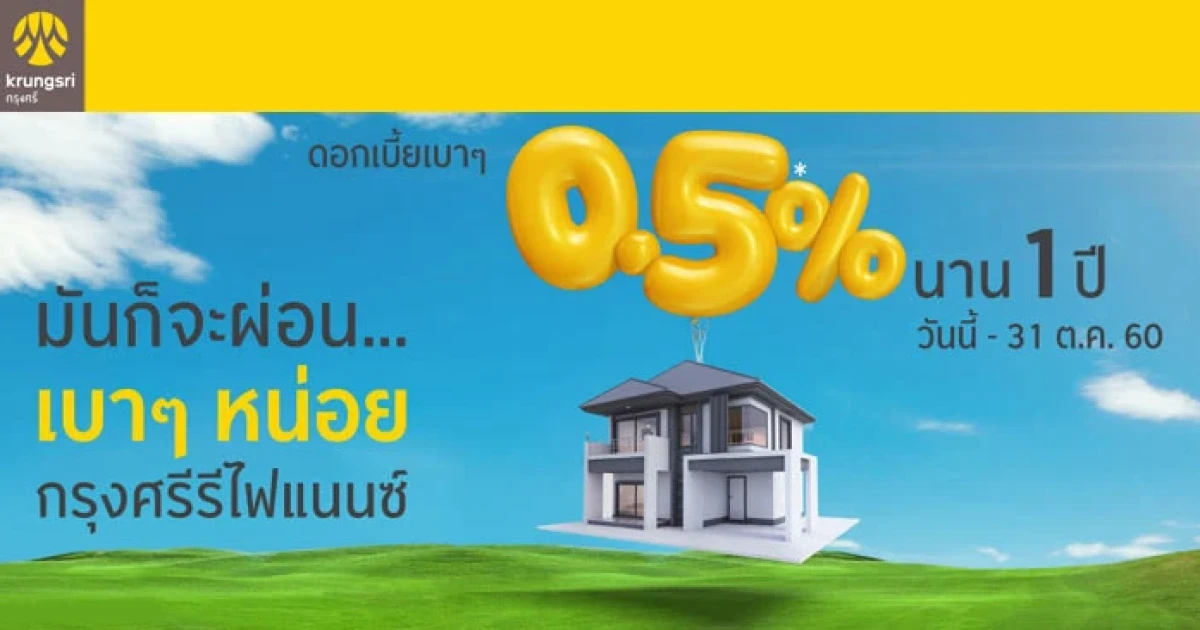 สินเชื่อบ้านกรุงศรีรีไฟแนนซ์ ประหยัดกว่า...พร้อมรับดอกเบี้ยต่ำ 0.50% ต่อปี นาน 1 ปี