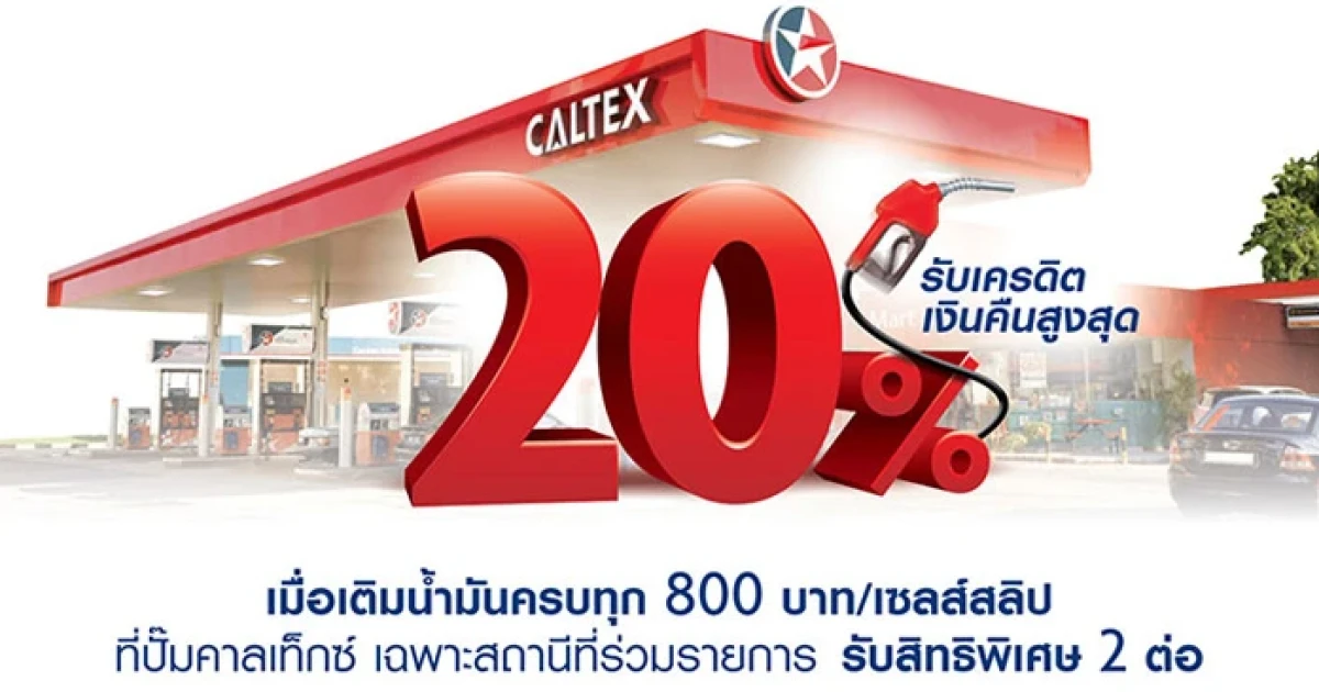 รับเครดิตเงินคืนสูงสุด 20% เมื่อเติมน้ำมัน ที่ปั๊มคาลเท็กซ์ และชำระผ่านบัตรเครดิตยูโอบี