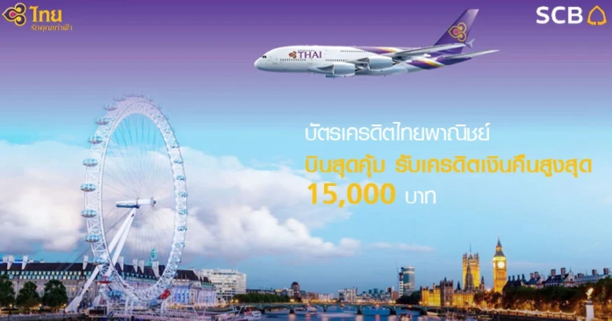 บินสุดคุ้ม รับเครดิตเงินคืนสูงสุด 15,000 บาท เมื่อซื้อบัตรโดยสารการบินไทย ผ่านบัตรเครดิต SCB