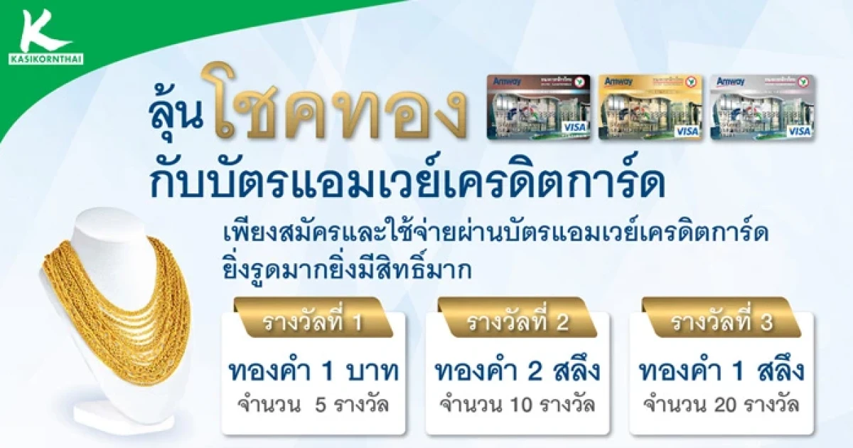 ลุ้นโชคทอง กับบัตรแอมเวย์เครดิตการ์ด เพียงสมัครและใช้จ่ายผ่านบัตรเครดิตฯ ยิ่งรูดมาก ยิ่งมีสิทธิ์มาก