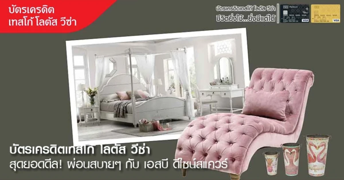 สุดยอดดีล! ผ่อนสบายๆ กับ SB Design Square 0% นาน 10 เดือน พร้อมรับเครดิตเงินคืนสูงสุด 45,000 บาท จากบัตรเครดิตเทสโก้ โลตัส วีซ่า