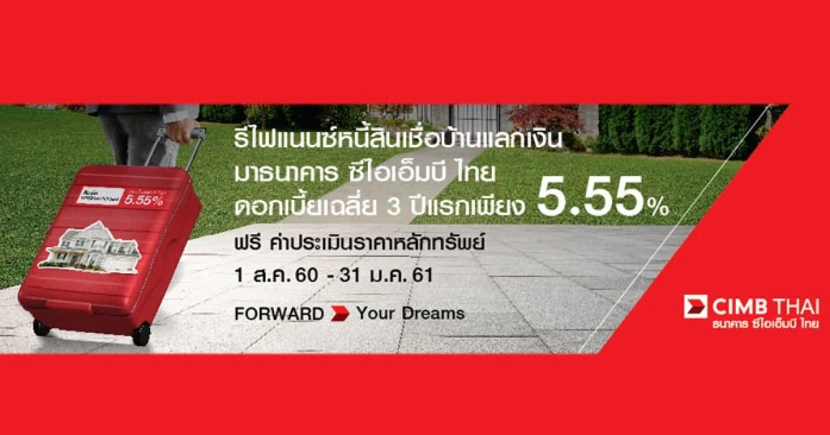 รีไฟแนนซ์สินเชื่ออเนกประสงค์ดอกเบี้ยเฉลี่ย 3 ปีแรก 5.55% จาก ธ.ซีไอเอ็มบี ไทย