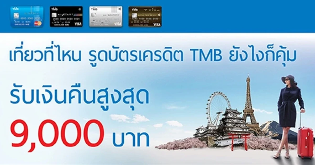 เที่ยวที่ไหน รูดบัตรเครดิต TMB ยังไงก็คุ้ม! รับเงินคืนสูงสุด 9,000 บาท เมื่อมียอดใช้จ่ายสะสมในต่างประเทศ และชำระเป็นสกุลเงินต่างประเทศ (ไม่รวมยอดช้อปผ่านทางออนไลน์)
