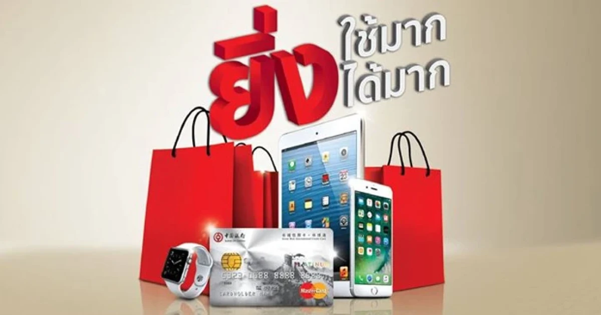 ยิ่งใช้มาก ยิ่งได้มาก ลุ้นรับ 3 ต่อ เพียงมียอดใช้จ่ายสะสมผ่านบัตรเครดิตธนาคารแห่งประเทศจีน ตามเงื่อนไขที่ธนาคารฯ กำหนด