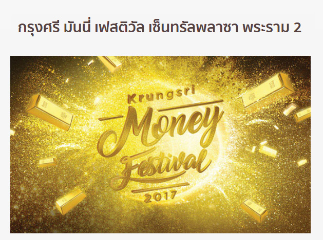 กรุงศรี มันนี่ เฟสติวัล มหกรรมการเงินพร้อมความบันเทิง 24 - 27 ส.ค.60 ที่เซ็นทรัลพลาซา พระราม 2
