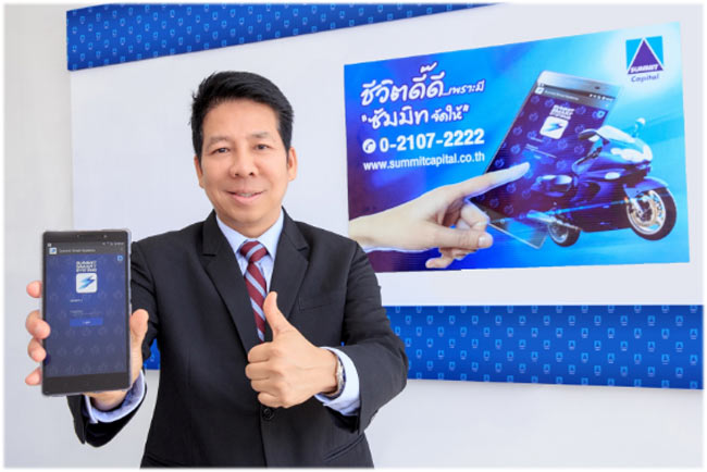 นายวิชิต พยุหนาวีชัย ประธานเจ้าหน้าที่บริหาร บริษัท ซัมมิท แคปปิตอล ลีสซิ่ง จำกัด กล่าวว่า "บริษัทเห็นถึงความสำคัญในการให้บริการแก่ลูกค้า ดังนั้น จึงได้พัฒนาระบบแอพพลิเคชั่น SUMMIT SMART SYSTEM ที่ลูกค้าจะได้รับความสะดวกรวดเร็วในการขอสินเชื่อเช่าซื้อรถจักรยานยนต์ผ่านสมาร์ทโฟน โดยเจ้าหน้าที่ขายสามารถดำเนินเรื่องได้อย่างรวดเร็ว ซึ่งจะลดขั้นตอนการทำงานของเจ้าหน้าที่ขาย ลดความผิดพลาดและเพิ่มความปลอดภัยในการจัดเก็บและส่งข้อมูล โดยเจ้าหน้าที่ขายทุกพื้นที่ทั่วประเทศกว่า 400 คน สามารถส่งเอกสารการสมัครและข้อมูลลูกค้าผ่านทางแอพพลิเคชั่นมายังศูนย์อนุมัติสินเชื่อรายย่อยได้ทันที และเจ้าหน้าที่อนุมัติสินเชื่อสามารถอนุมัติสินเชื่อให้ลูกค้าได้อย่างรวดเร็ว หรือภายใน 30 นาทีต่อลูกค้า 1 ราย หากข้อมูลทุกอย่างถูกต้องครบถ้วนและเป็นไปตามเกณฑ์ที่บริษัทฯ กำหนด"