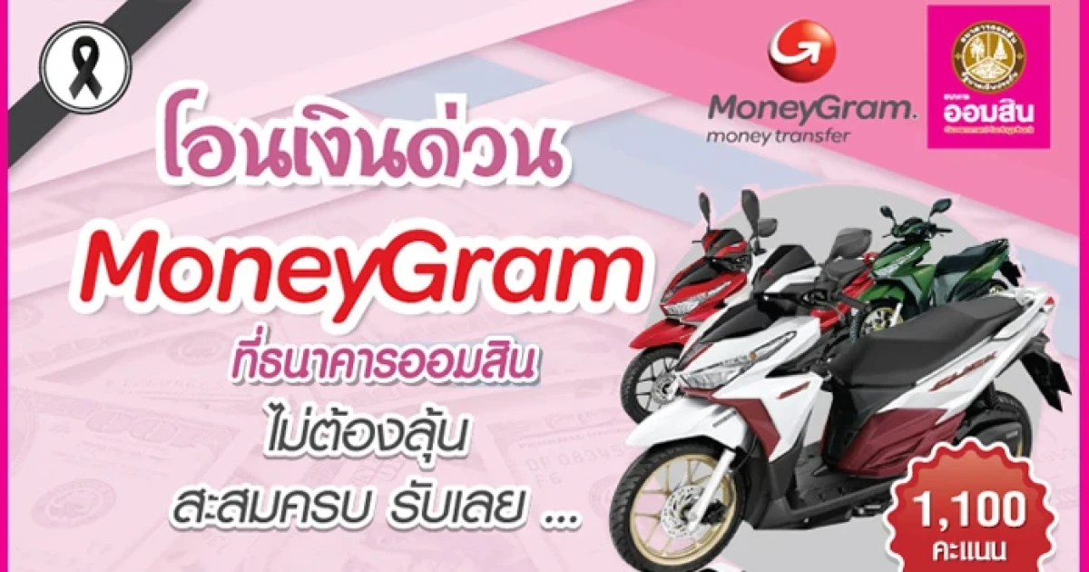 สำหรับลูกค้าที่โอนเงินด่วนผ่าน MoneyGram ที่ธนาคารออมสิน เพียงสะสมคะแนนครบ ไม่ต้องลุ้น รับเลยของรางวัลมากมาย