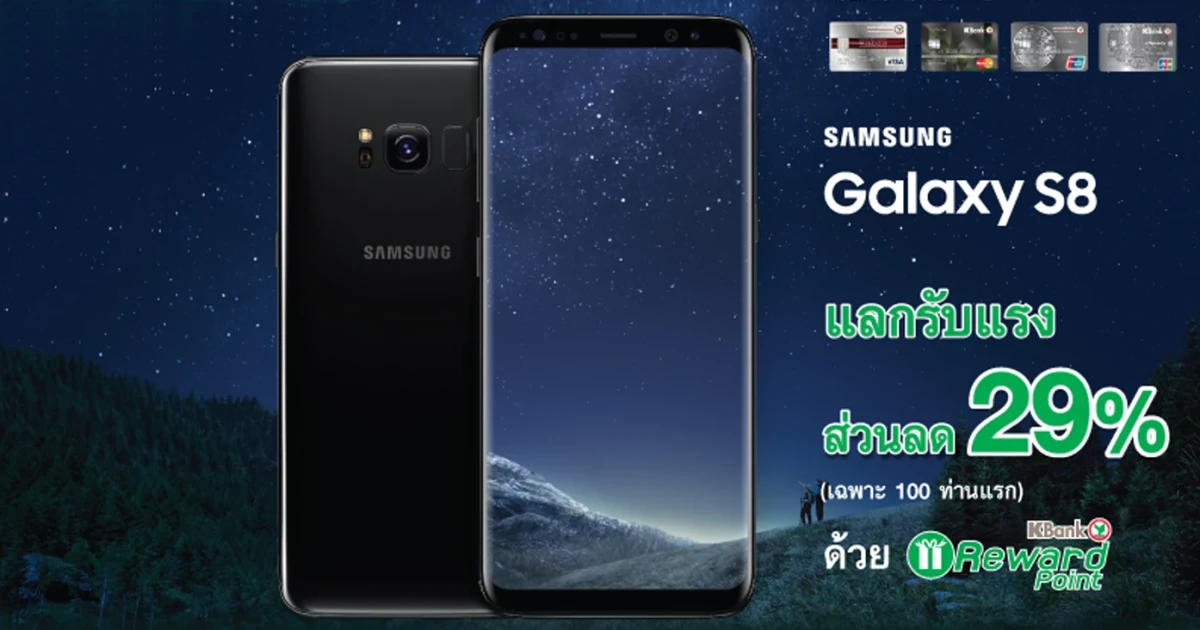ใช้คะแนน KBank Reward แลกรับ SAMSUNG Galaxy S8 พร้อมส่วนลด 29% จากบัตรเครดิตกสิกรไทย