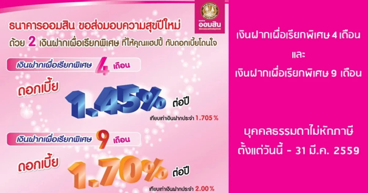 บัญชีเงินฝากเผื่อเรียกพิเศษ (4 เดือน และ 9 เดือน) ... ธนาคารออมสิน