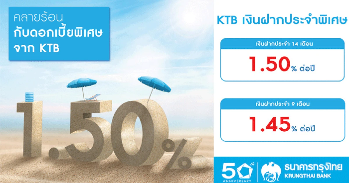 บัญชีเงินฝากประจำพิเศษ ระยะเวลาฝาก 9 เดือน และ 14 เดือน มอบดอกเบี้ยสูงสุด 1.50% ต่อปี
