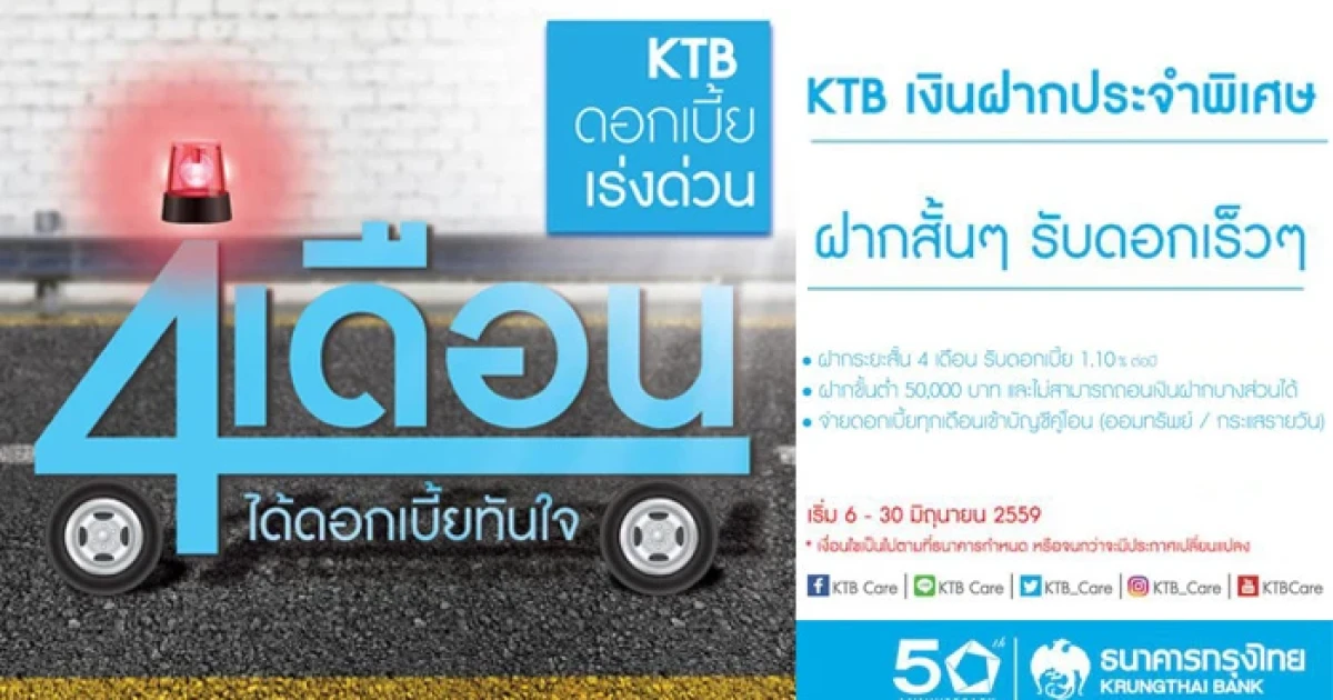 บัญชีเงินฝากประจำพิเศษ ระยะเวลาฝาก 4 เดือน ... ธนาคารกรุงไทย