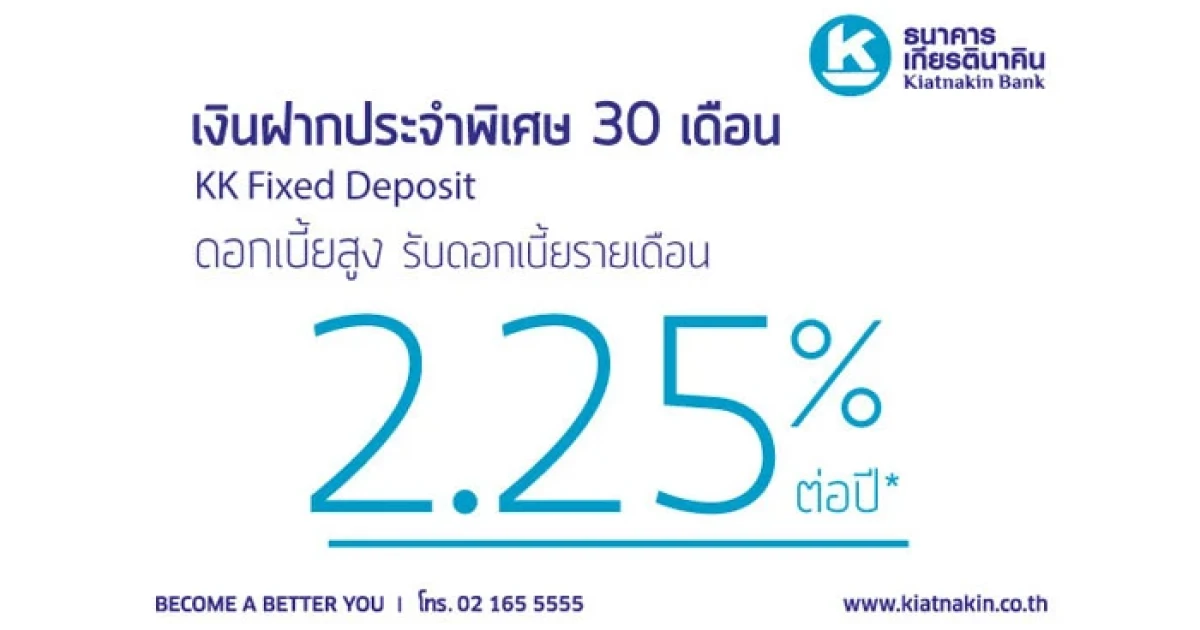 เงินฝากประจำพิเศษ 30 เดือน KK Fixed Deposit ดอกเบี้ยสูง รับดอกเบี้ยรายเดือน 2.25% ต่อปี
