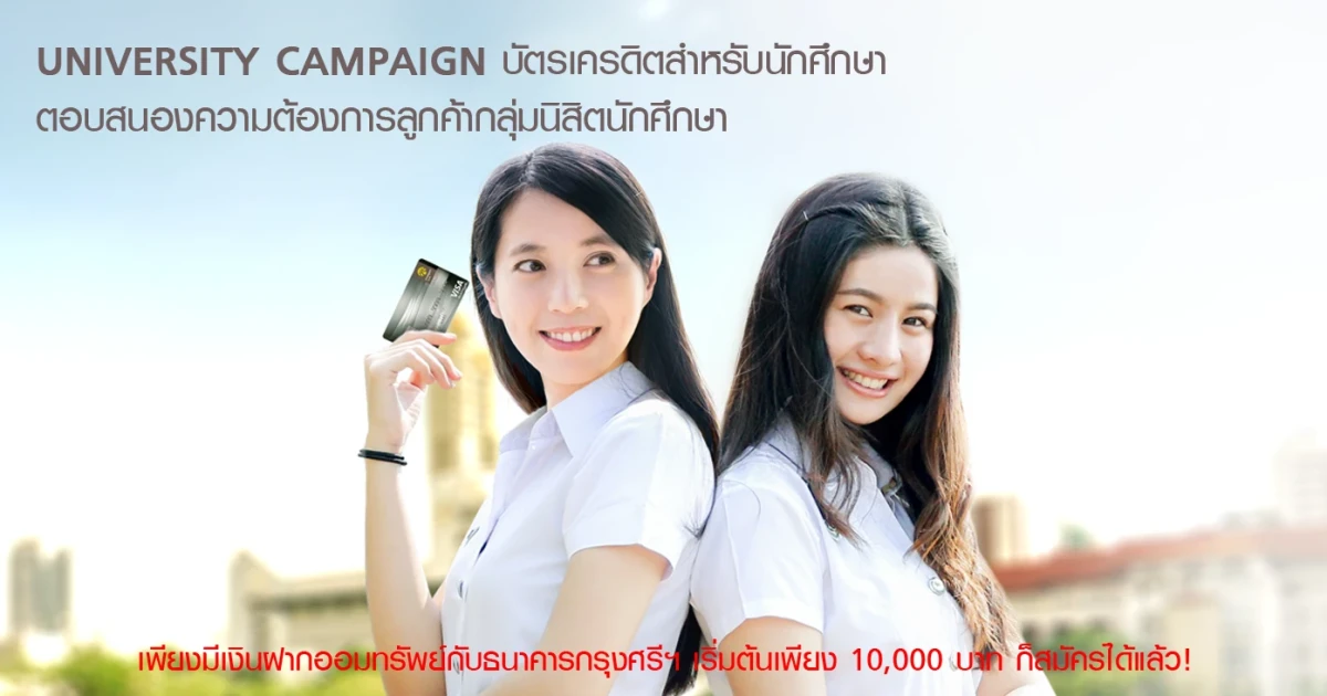 บัตรเครดิตสำหรับนักศึกษา เพียงมีบัญชีเงินฝากออมทรัพย์ธนาคารกรุงศรีฯ 10,000 บาท ก็สมัครได้!