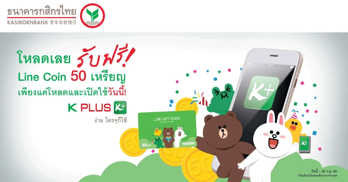 จัดการเรื่องเงินง่ายๆ ด้วย K PLUS โหลดและเปิดใช้วันนี้ รับฟรี! 50 Line Coins