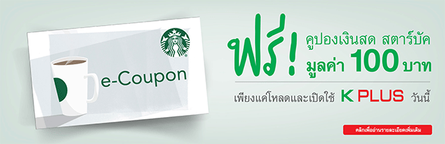 - รับฟรี! คูปองเงินสด Starbucks e-Coupon มูลค่า 100 บาท