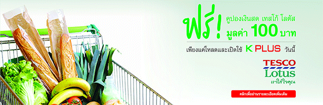 เพียงโหลดแอป K PLUS และทำรายการ โอน เติม หรือ จ่ายบิล อย่างน้อย 1 รายการในเดือนแรกที่สมัคร เลือกรับความอร่อยและส่วนลดจากร้านดังฟรี อาทิเช่น คูปองเงินสดที่เทสโก้ โลตัส, สตาร์บัคส์ และเมนูอร่อยจากแมคโดนัลด์ วันนี้ - 31 ธันวาคม 2560 *จำนวนจำกัด*