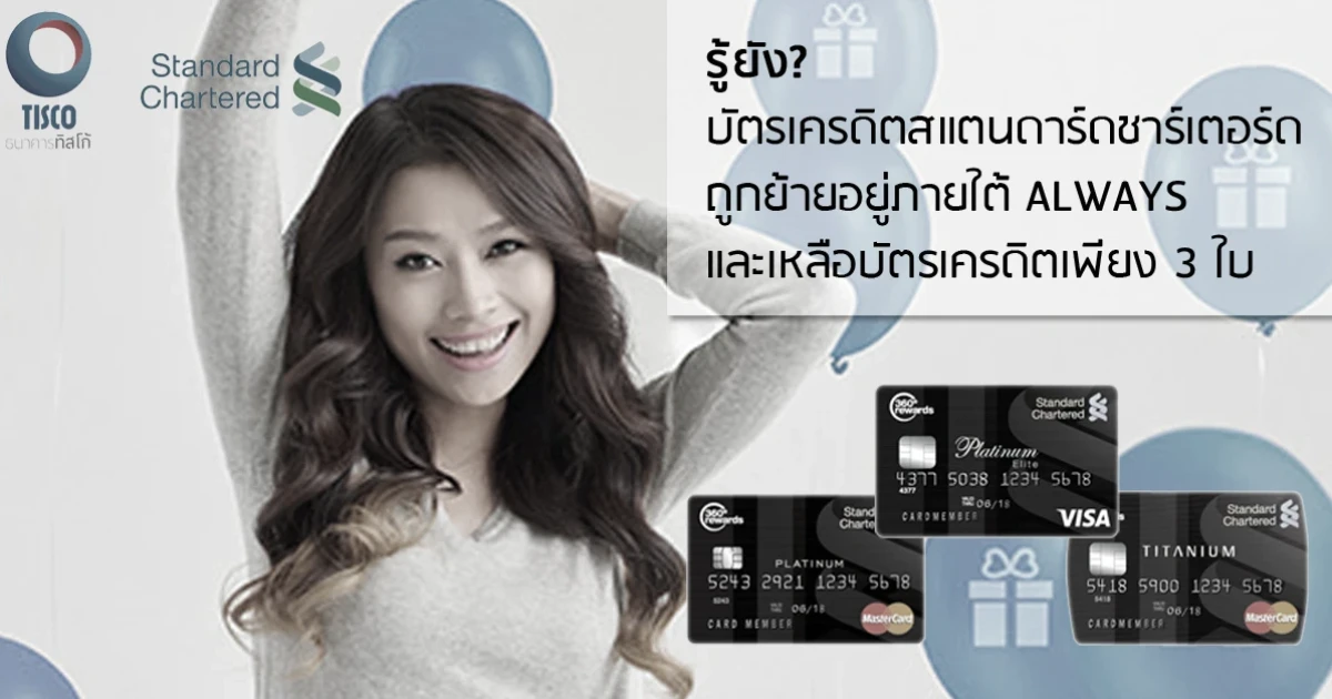 รู้ยัง? บัตรเครดิตสแตนดาร์ดชาร์เตอร์ด ถูกย้ายอยู่ภายใต้ ALWAYS และเหลือบัตรเครดิตเพียง 3 ใบ