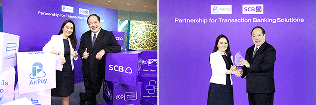 นายพิพัฒน์ อัสสมงคล รองผู้จัดการใหญ่ ผู้บริหารสาย GTS Solution Sales Specialist and Services ธนาคารไทยพาณิชย์ เปิดเผยว่า ธนาคารไทยพาณิชย์ให้ความสำคัญต่อการลงทุนนำเทคโนโลยีเข้ามาพัฒนาระบบการจัดการด้านการเงิน เพื่อเพิ่มประสิทธิภาพการให้บริการแก่ลูกค้าอย่างต่อเนื่อง จึงได้รับความไว้วางใจจากองค์กรชั้นนำมากมายในการมอบหมายเป็นผู้ให้บริการด้านการจัดการด้านการเงินแบบครบวงจร (Total Transaction Banking Solution) ทั้งนี้ธนาคารกำลังขยายการให้บริการไปยังกลุ่มธุรกิจผู้ให้บริการชำระเงินทางอิเล็กทรอนิกส์ใหม่ๆ ที่มีแนวโน้มเติบโตอย่างต่อเนื่อง โดยล่าสุดธนาคารไทยพาณิชย์ได้รับความเชื่อมั่นจาก บริษัท แอร์เพย์ (ประเทศไทย) จำกัด มอบหมายเป็นผู้ให้บริการด้านชำระเงินแบบครบวงจรของบริษัท ปัจจุบันธุรกิจรับชำระเงินของแอร์เพย์ ประกอบด้วย 2 ช่องทางหลัก คือ AirPay Application และ AirPay Counter มีร้านค้าร่วมเป็นหน้าร้านรับชำระเงินกว่า 100,000 จุดทั่วประเทศ โดยธนาคารจะเข้าไปสนับสนุนบริการทั้งทางด้านขารับชำระเงินจากลูกค้า และขาชำระเงินให้กับเครือข่ายร้านค้าและคู่ค้า จากการให้บริการเติมเงินเกมออนไลน์ ช้อปปิ้งออนไลน์ โอนเงิน เติมเงินโทรศัพท์มือถือ จ่ายบิลต่างๆ และการซื้อตั๋วภาพยนตร์ เป็นต้น