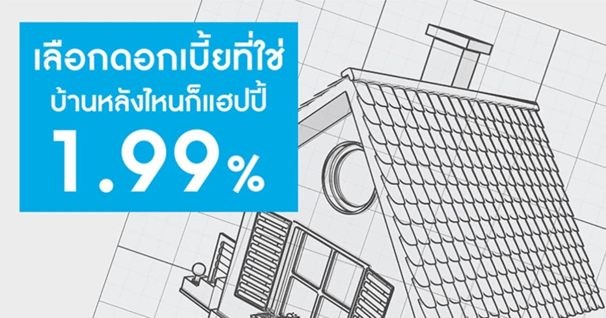 สินเชื่อบ้าน "กรุงไทย...ใจดี" ดอกเบี้ยดี คือความสุขที่แท้จริง ให้ดอกเบี้ย 1.99% ต่อปี นาน 1 ปี