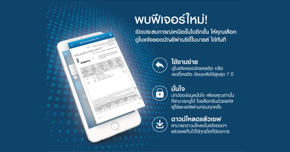 พบฟีเจอร์ใหม่! เปิดประสบการณ์เหนือชั้นไปอีกขั้น ให้คุณเลือกดูใบแจ้งยอดบัญชีผ่านซิตี้โมบายล์ ได้ทันที