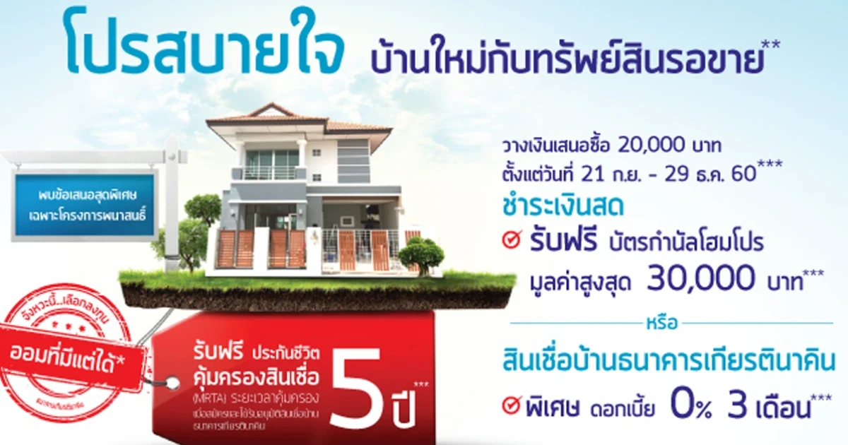 โปรสบายใจ บ้านใหม่กับทรัพย์สินรอขายธนาคารเกียรตินาคิน พบข้อเสนอสุดพิเศษเฉพาะโครงการพนาสินธิ์ วางเงินเสนอซื้อ 20,000 บาท ตั้งแต่วันที่ 21 ก.ย. - 29 ธ.ค. 60