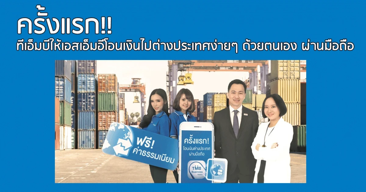 ครั้งแรก!! ทีเอ็มบีให้เอสเอ็มอีโอนเงินไปต่างประเทศง่ายๆ ด้วยตนเอง ผ่านมือถือ