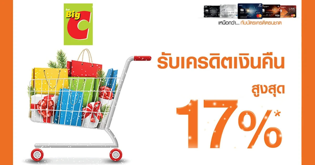 รับเครดิตเงินคืนสูงสุด 17% เมื่อช้อปที่ Big C ทุกสาขาที่ร่วมรายการ ผ่านบัตรเครดิตธนชาต