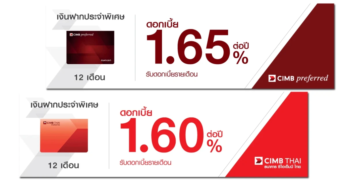 โปรโมชั่นเงินฝากดอกเบี้ยสูง กับบัญชีเงินฝากประจำพิเศษ 6, 12 เดือน จากธนาคารซีไอเอ็มบี ไทย