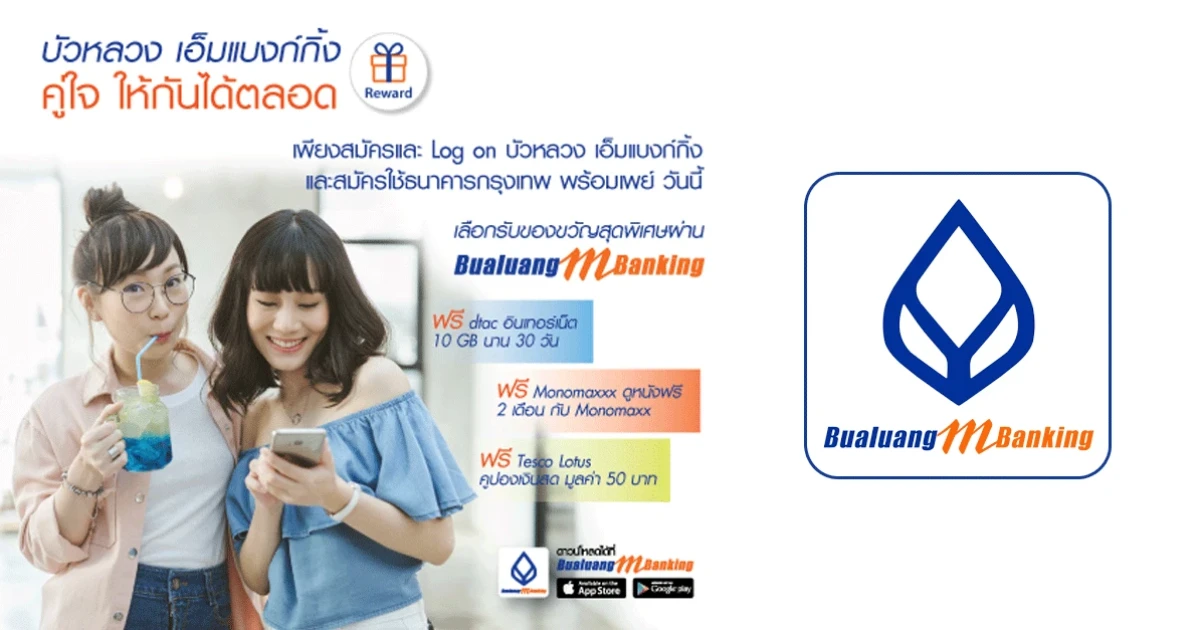 - สมัครและเข้าใช้บริการบัวหลวง เอ็มแบงก์กิ้งครั้งแรก ระหว่างวันที่ 15 ม.ค. - 31 มี.ค. 2561 และ