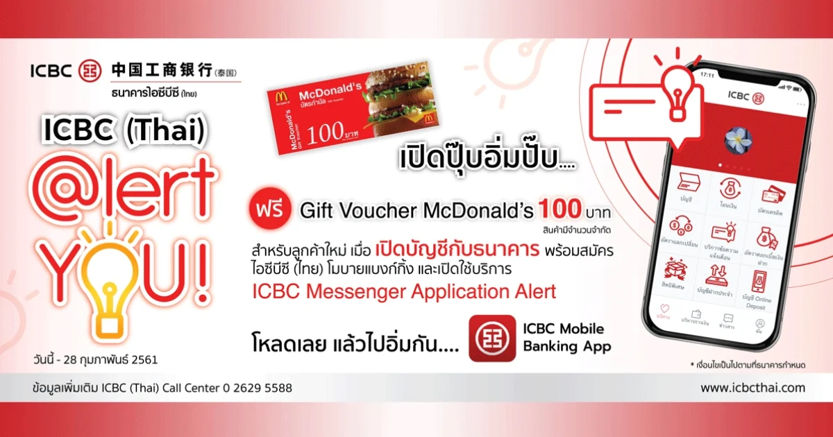 สมัคร ICBC (Thai) @lert you วันนี้ รับเลยคูปองแทนเงินสด Mcdonald's 100 บาท !!