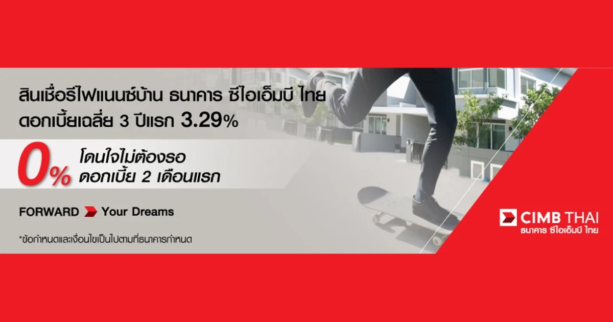 0% โดนใจไม่ต้องรอ ดอกเบี้ย 2 เดือนแรก จากสินเชื่อรีไฟแนนซ์บ้าน ธนาคารซีไอเอ็มบี ไทย