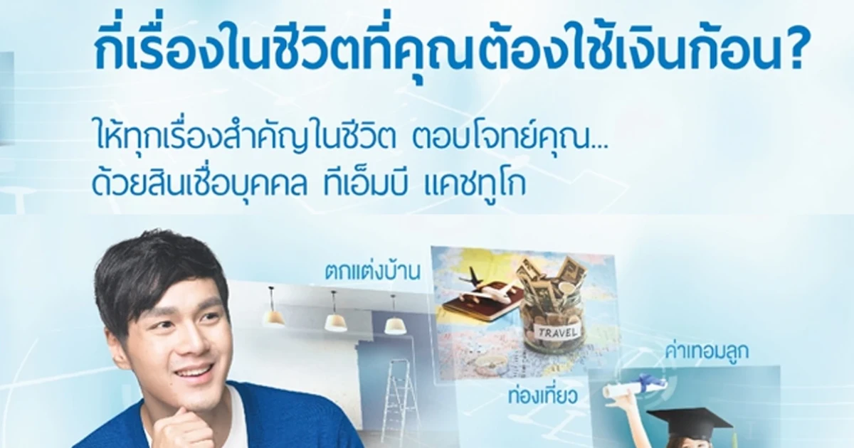 เคยคิดมั๊ยว่า ถ้าคุณมีเงินสักก้อน คงจะมีโอกาสได้ทำอะไรดีๆ หรือเคยมีใครซักคนเคยบอกคุณมั๊ยว่า คุณมีไอเดียมากมาย ลงมือทำสิ แต่ที่ยังไม่ทำ เพราะคุณยังไม่พร้อมเรื่องเงินทุนใช่มั๊ย โอกาสทำสิ่งดีๆ หรือไอเดีย จะไม่เป็นแค่ความฝันอีกต่อไป ด้วยสินเชื่อบุคคล ทีเอ็มบี แคชทูโก