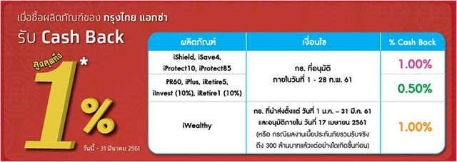 เมื่อซื้อผลิตภัณฑ์ของ กรุงไทย แอกซ่า รับ Cash Back สูงสุดถึง 1%