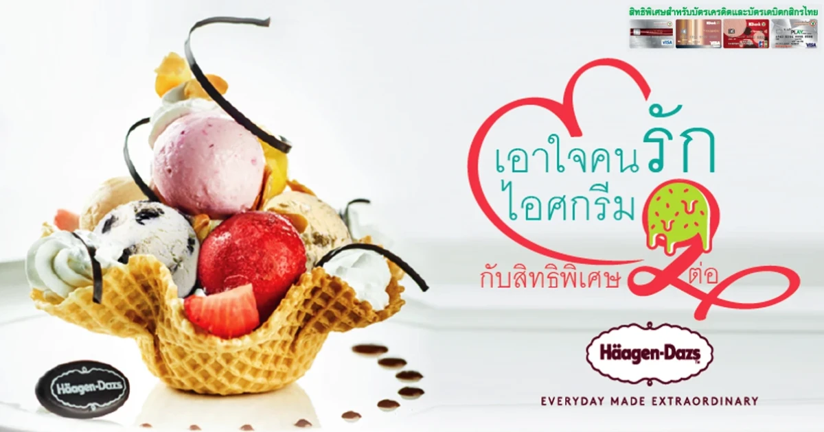 เอาใจคนรักไอศกรีม รับสิทธิพิเศษ 2 ต่อ ที่ร้าน Haagen-Dazs จากบัตรเครดิต และบัตรเดบิตกสิกรไทย