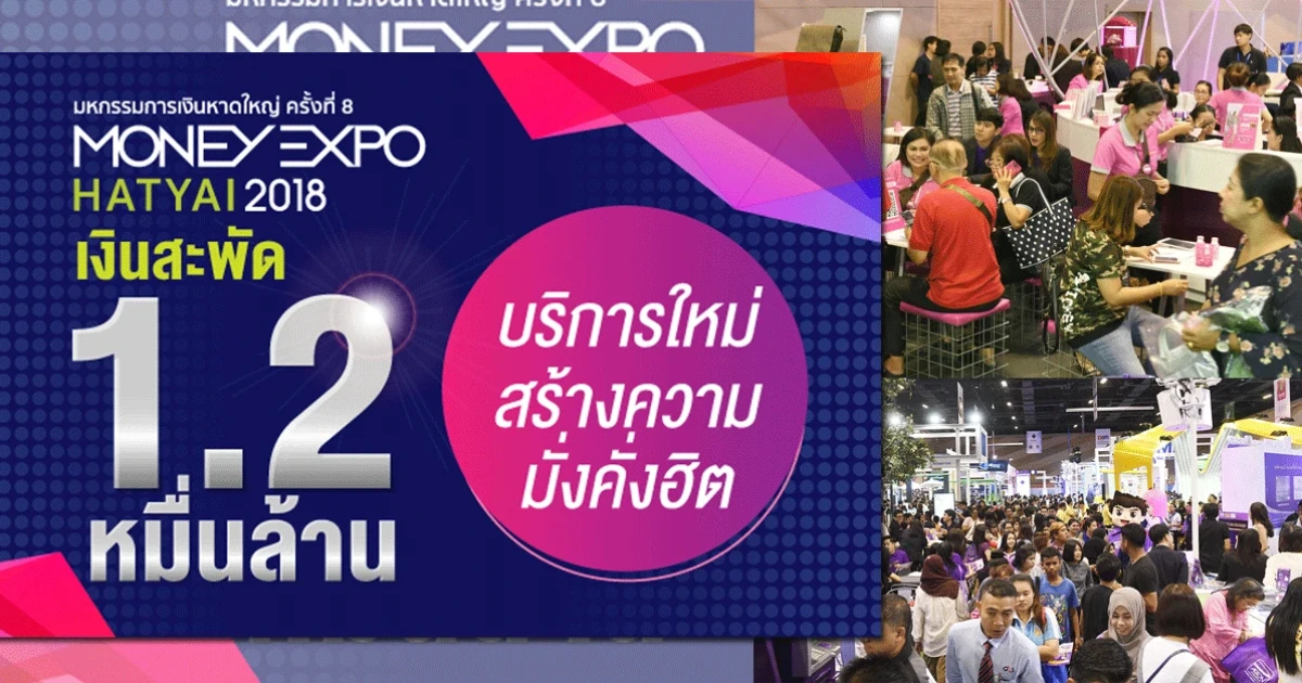 งานมหกรรมการเงินหาดใหญ่ครั้งที่ 8 Money Expo Hatyai 2018 จัดโดยวารสาร "การเงินธนาคาร" วันที่ 9-11 มีนาคม 2561 เงินสะพัดในงาน 3 วัน 12,000 ล้านบาท