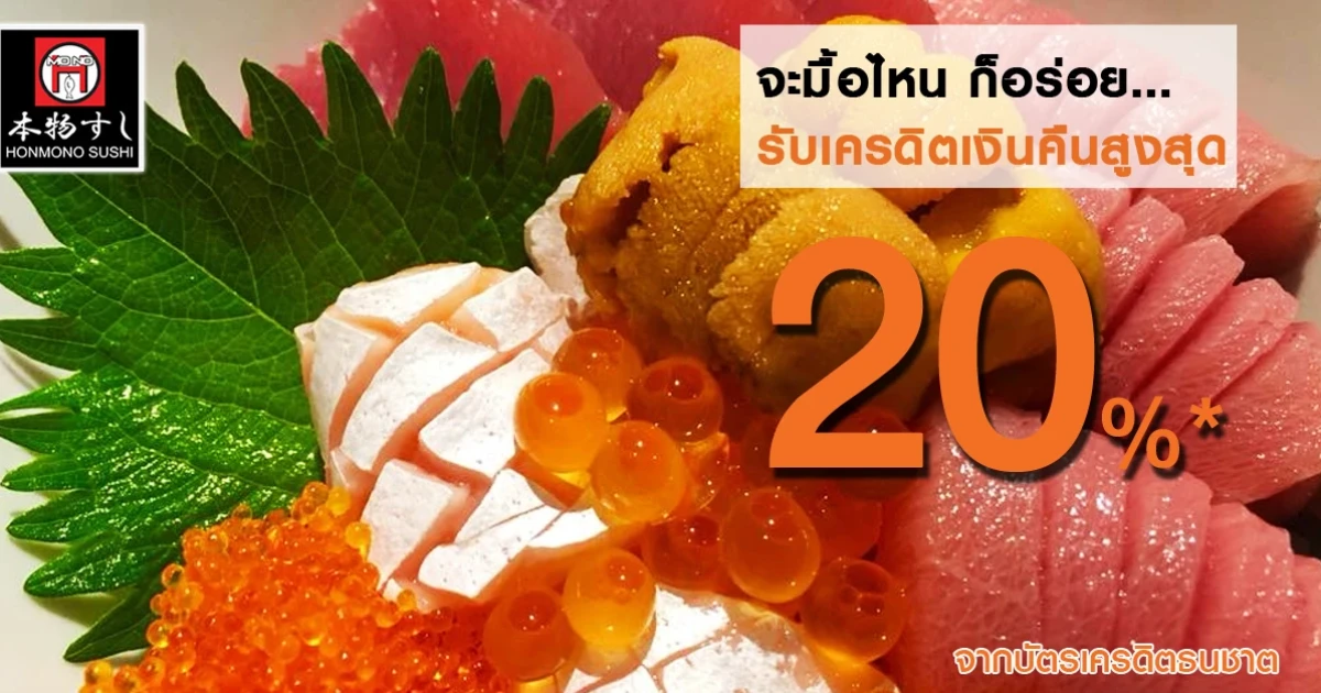จะมื้อไหน ก็อร่อย... รับเครดิตเงินคืนสูงสุด 20% ที่ร้าน HONMONO SUSHI จากบัตรเครดิตธนชาต