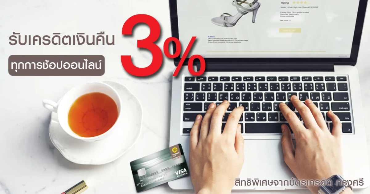 สมัครบัตรเครดิตกรุงศรี วันนี้.. พิเศษ! ทุกการช้อปออนไลน์ รับเครดิตเงินคืนสูงสุด 3% ของยอดใช้จ่าย