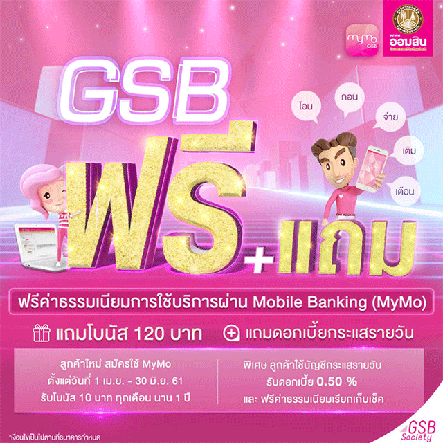 ใช้บริการ Mobile Banking (MyMo) จากธนาคารออมสิน ดี๊ ดี ฟรี + แถม