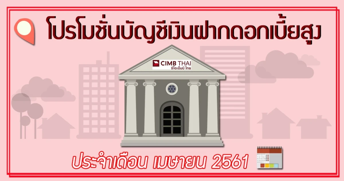 โปรโมชั่นบัญชีเงินฝากดอกเบี้ยสูงประจำเดือนเมษายน 2561 จากธนาคารซีไอเอ็มบี ไทย บัญชีเงินฝากประจำแบบมีกำหนดระยะเวลาที่ให้ดอกเบี้ยสูง และสามารถเลือกรับดอกเบี้ยแบบรายเดือน หรือเมื่อครบกำหนดได้