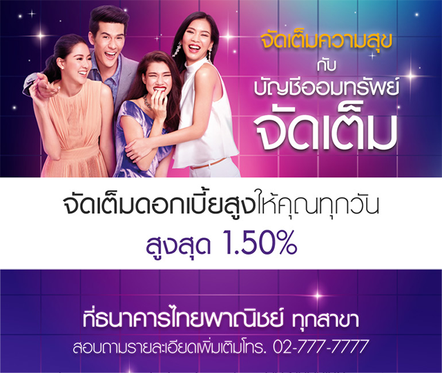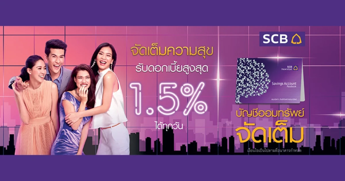 จัดเต็มความสุข กับบัญชีออมทรัพย์จัดเต็มจากธนาคารไทยพาณิชย์ จัดเต็มดอกเบี้ยสูงให้ทุกวัน สูงสุด 1.50% จัดเต็มสภาพคล่อง ฝากถอนได้ตามใจ