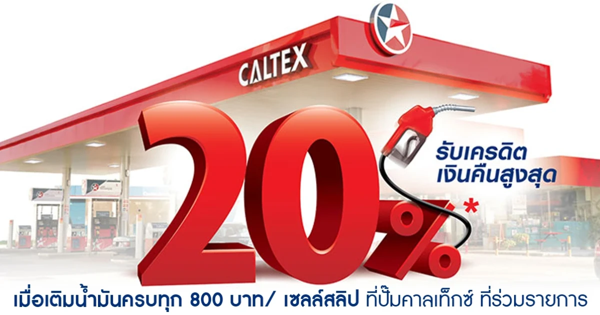 รับเครดิตเงินคืนสูงสุด 20% เมื่อเติมน้ำมันครบทุก 800 บาท/ เซลส์สลิป ที่ปั๊มคาลเท็กซ์ ผ่านบัตรเครดิตยูโอบี
